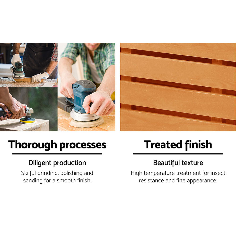 Turn your patio or front porch into a relaxing retreat with this 2 Seat Wooden Outdoor Storage Bench, a piece that’s as practical as it is good-looking. Crafted from durable fir wood and finished in a warm, natural timber tone, this bench brings a laid-back, coastal charm to any outdoor area. It’s the kind of furniture that looks just as good on a sunny deck as it does under the shady spot beneath your favourite tree.