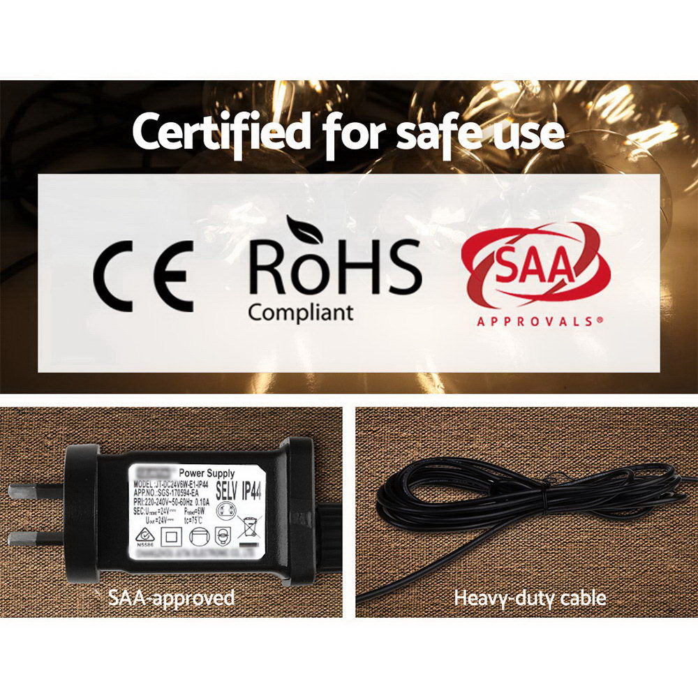They’re energy-efficient, safe to touch (low voltage), and you can link multiple sets together if you want to go big. Just plug it into a standard Aussie socket and you’re sorted. Each bulb’s got a massive 20,000-hour lifespan too, so you’ll get years of good times out of them.