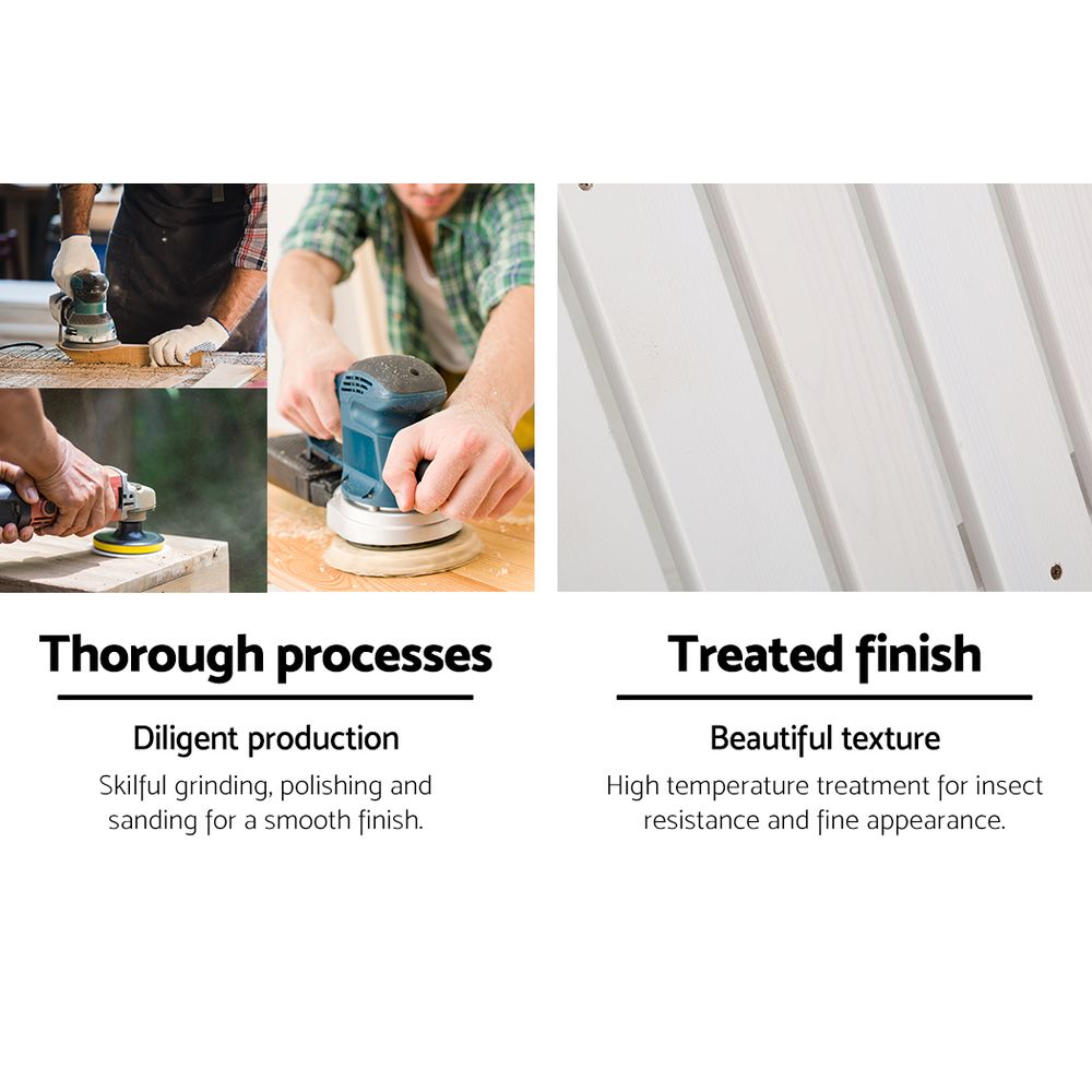 Crafted with care, this Adirondack Chair showcases exquisite details like smooth, rounded edges and elegant bevelled highlights, giving it a touch of sophistication while remaining practical. The environmentally-friendly water-based paint not only enhances the natural beauty of the Fir wood but also provides UV resistance and weatherproofing, so you can enjoy it come rain or shine. And when it’s time to tuck it away, storing it is a breeze.