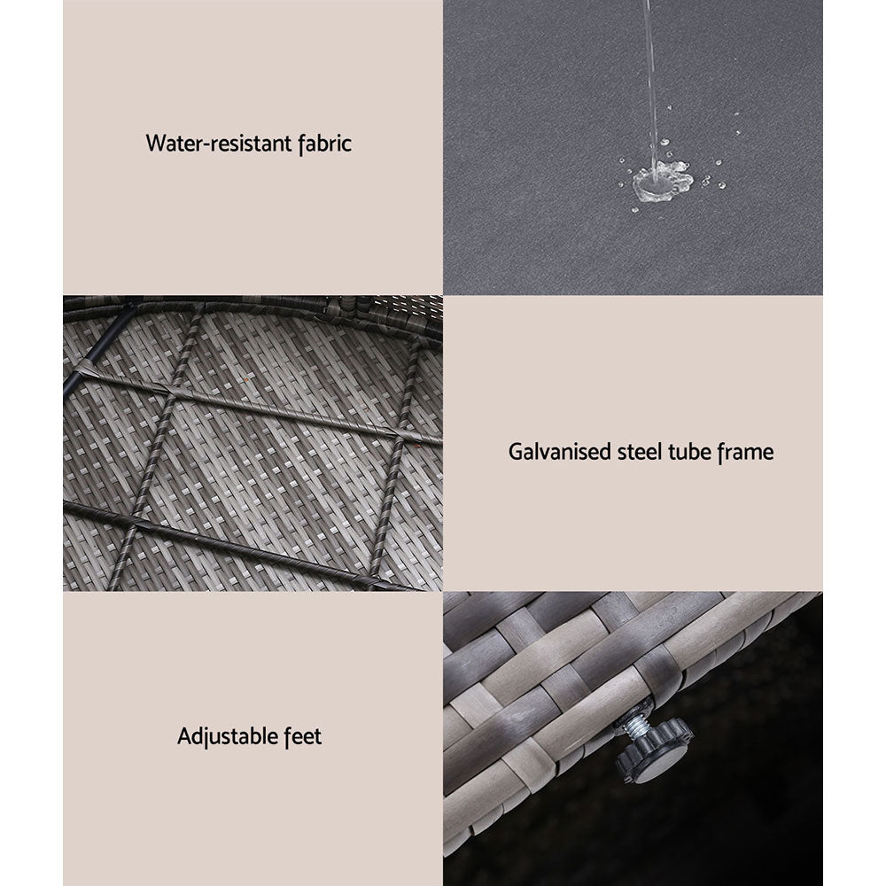 The modular design of this sun lounge means you can easily set it up to suit your space however you like. With an adjustable folding canopy that tilts from 0 to 90 degrees, you can find the perfect angle to keep the sun out of your eyes while you relax. Crafted with a UV-resistant frame and a water-resistant cushion, it’s ready for whatever the Aussie weather throws at it. The heavy-duty galvanised steel frame provides solid support, ensuring it can hold up to 120kg, while the plush 7cm thick high-density foam seat cushion makes comfort a priority.