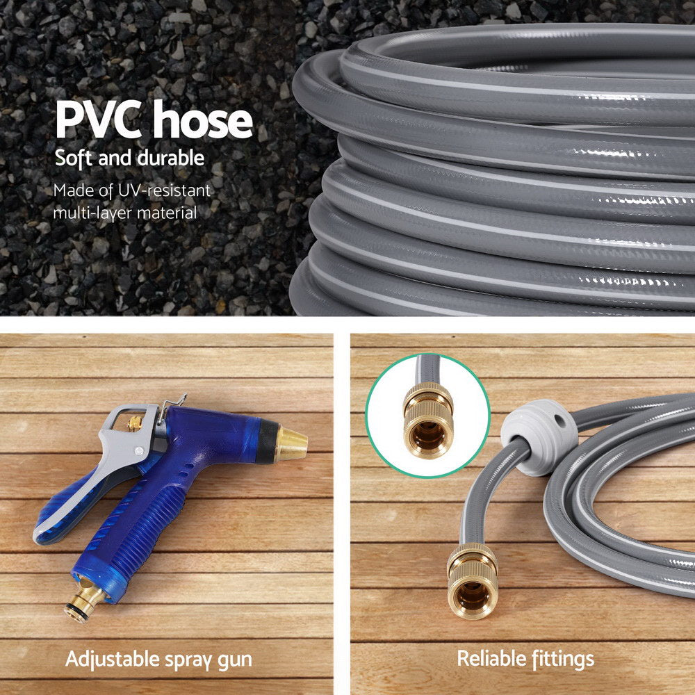 The 180° swivel wall mount allows you to position it just right, while the durable PVC hose and built-in handle make it super easy to carry around when you need to move it. Whether you're watering the garden or giving the patio a good clean, the adjustable multi-mode spray gun ensures that every task is effortless. It's compact, user-friendly, and will help you keep your outdoor space looking immaculate.