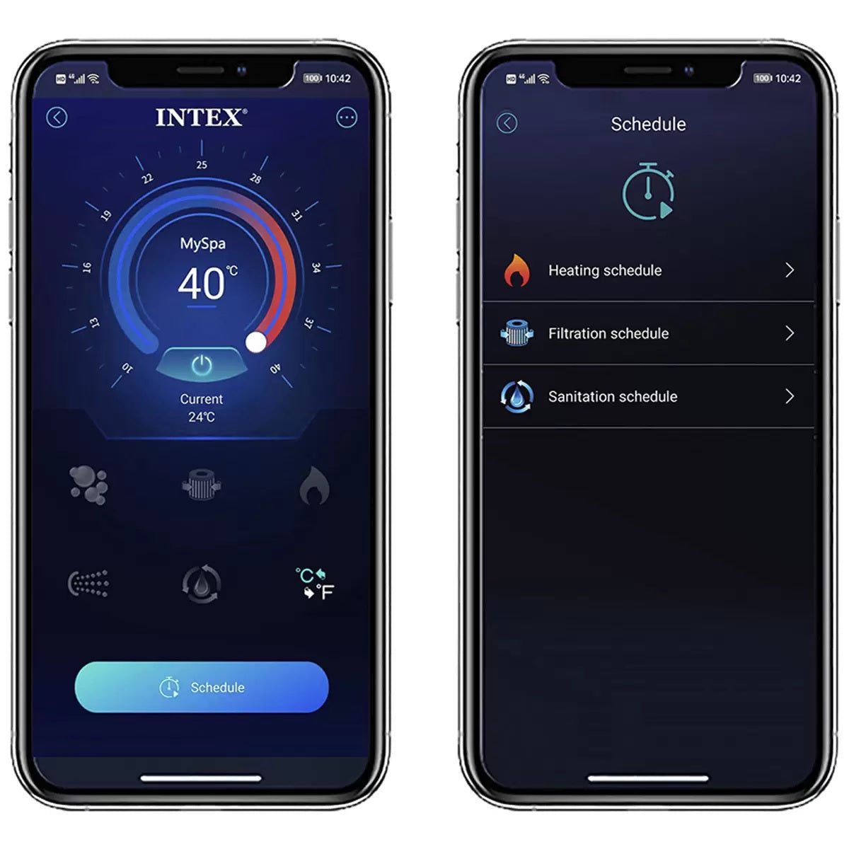With a water temperature that can reach a relaxing 40 degrees Celsius, you'll be able to unwind after a long day or enjoy a social evening with friends. The hot tub features a removable wireless control panel that charges effortlessly and gives you up to 48 hours of operation on a single charge. Simply attach it to the top of the tub and you’re all set for an evening of relaxation.