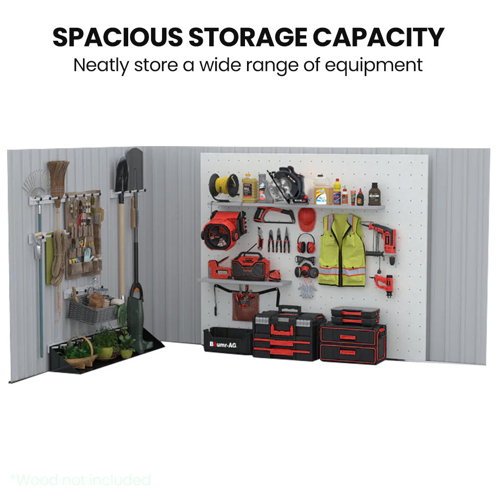 For those hot Aussie days, the front and rear air vents ensure proper ventilation, helping to prevent any nasty mould or fume build-up inside. And when it comes to large items, the wide sliding doors provide easy access without the hassle. Included with the shed is a sturdy floor frame, normally valued at $139.90, which adds extra strength and can support optional flooring, giving you a solid base for storage.